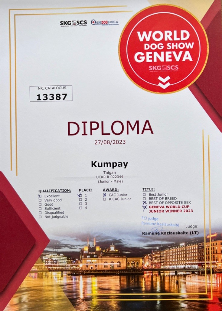 Résultats d'expositions 2025 2023 1° EXC CACJ-BOS - JUNIOR WINNER 2023 Kumpay (Sans Affixe) 27/8/2023 - GENÈVE - SUISSE WORLD DOG SHOW Juge : KAZLAUSKAITE Ramune (LT) 1° EXC CACJ - Best Junior - JUNIOR WINNER 2023 Shamal (Sans Affixe) 27/8/2023 - GENÈVE - SUISSE WORLD DOG SHOW Juge : KAZLAUSKAITE Ramune